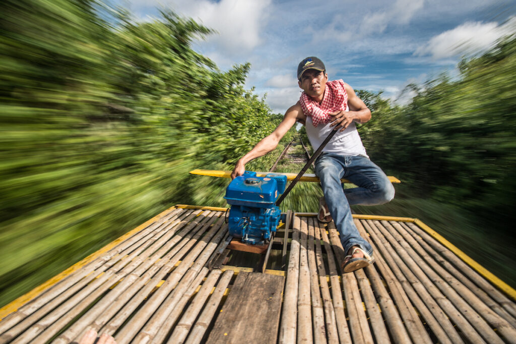 Ride the famous traditional bamboo train through the surrounding rice fields or the newer version that winds its way along the bottom of Phnom Banan.